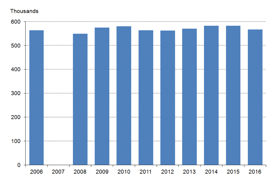 Figure 2: Shotgun certificates, as at 31 March 2006 to 2016, England and Wales