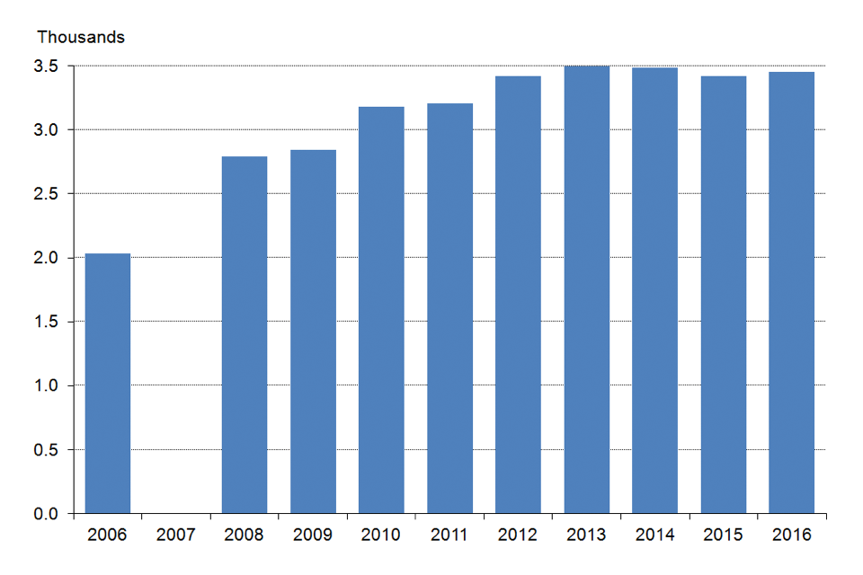 Figure 3: Registered firearm dealers as at 31 March 2006 to 2016, England and Wales
