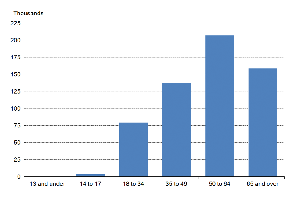 Figure 5: Firearm and/or shotgun certificate holders as at 31 March 2016, by age, England and Wales