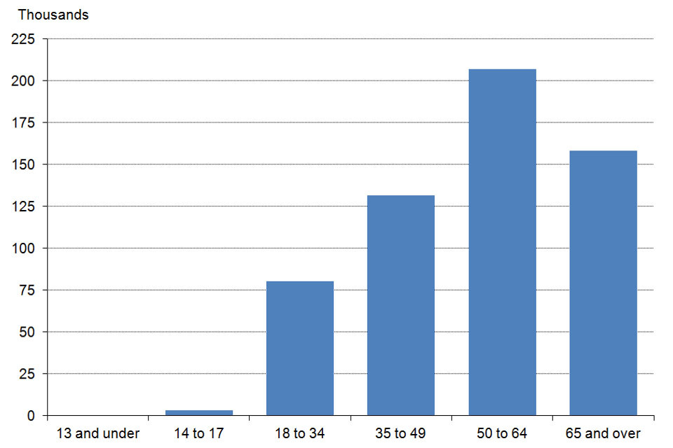 - Whilst the number of people aged 13 and under appears to be 0, there were in fact 327 people.