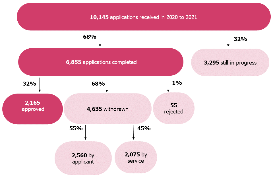 Data for Figure 8: Applications received in 2020 to 2021, by status on 31 March 2021