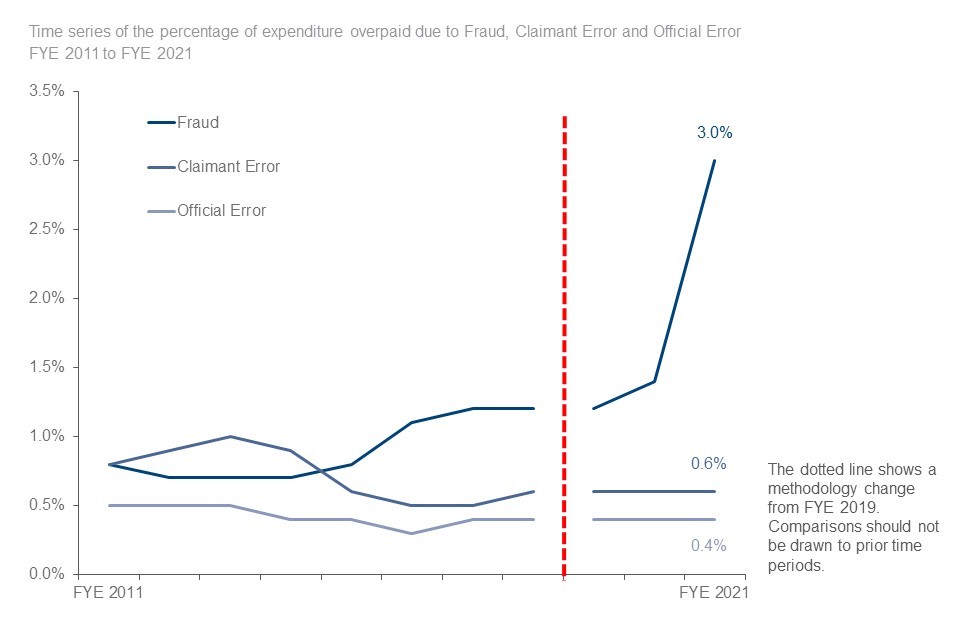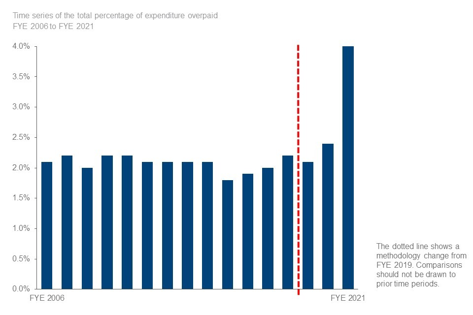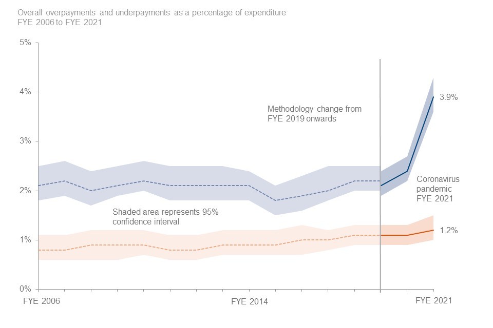 3.9% of benefit expenditure was overpaid in FYE 2021 - the highest overpayment rate to date: