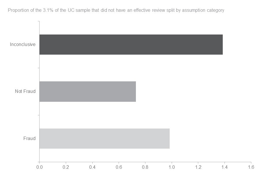 - Fraud – where a case has a suspicion of Fraud raised following initial data gathering prior to review, these cases are assumed to be Fraud in the reported estimates