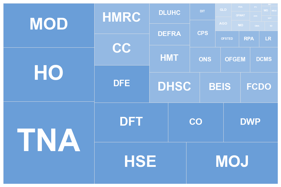 The Home Office, the Ministry of Defence, the Ministry of Justice, and the Department for Transport accounted for just over half (51%) of requests to Departments of State; while the National Archives and Health and Safety Executive accounted for 60% of requests to other monitored bodies.