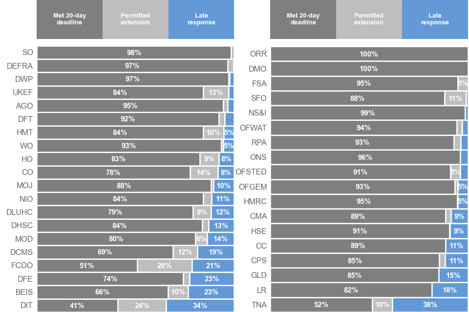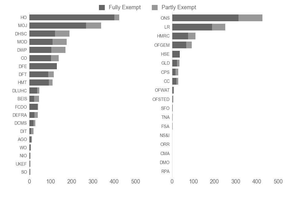 The Northern Ireland Office, Scotland Office and the Wales Office are included in these statistics as they fall under the jurisdiction of the UK-wide 2000 act. However, data is not collected from the Welsh Government or Northern Ireland Executive.