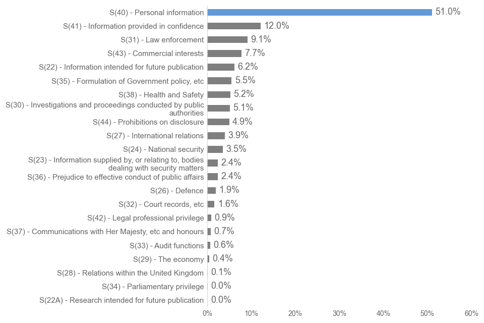 The exemptions applied when withholding information