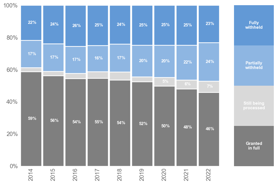 39% were granted in full, down from 40% in 2021. This is the lowest figure since monitoring began in 2005.
