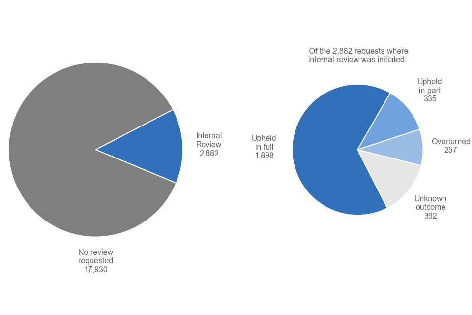 The outcome of internal reviews and external complaints
