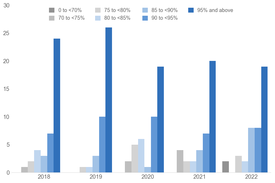 19 bodies (50%) responded to 95% or more of requests in time, down from 20 (53%) in 2021.