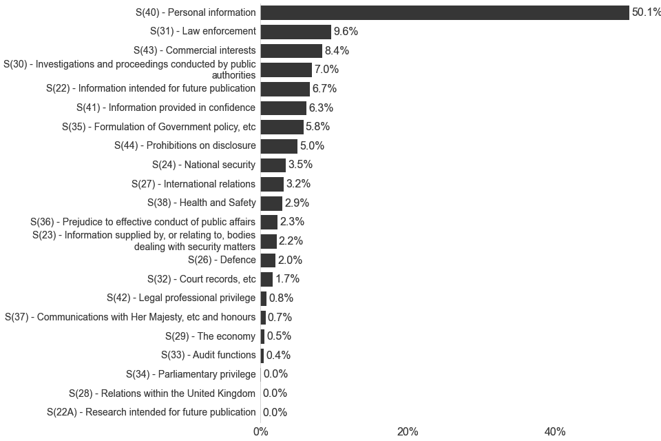 Figure 5.1: Use of exemptions* in Q3 July to September 2022, as a percentage of all exempted requests (see csv dataset)