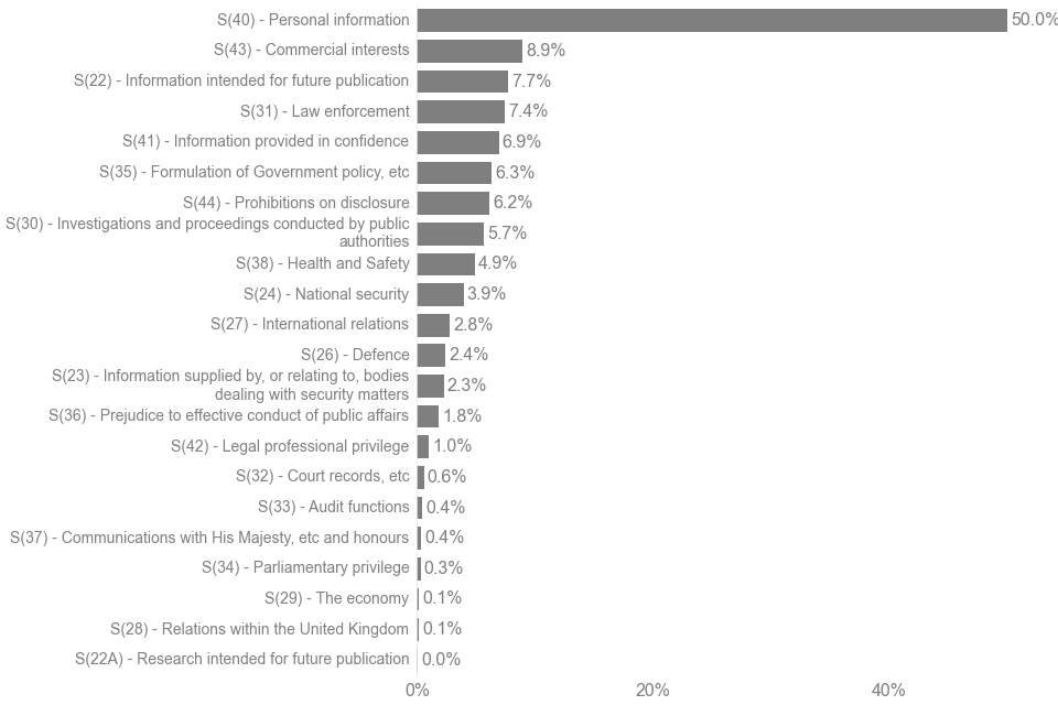 Figure 5.1: Use of exemptions* in Q4 October to December 2024, as a percentage of all exempted requests (see csv dataset)