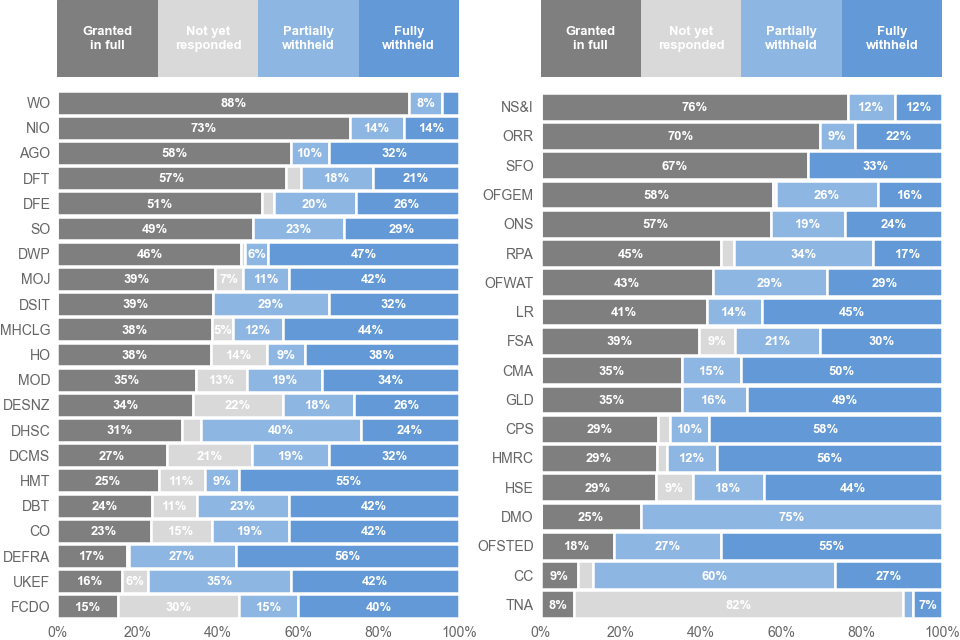 The Northern Ireland Office, Scotland Office and the Wales Office are included in these statistics as they fall under the jurisdiction of the UK-wide 2000 act. However, data is not collected from the Welsh Government or Northern Ireland Executive.