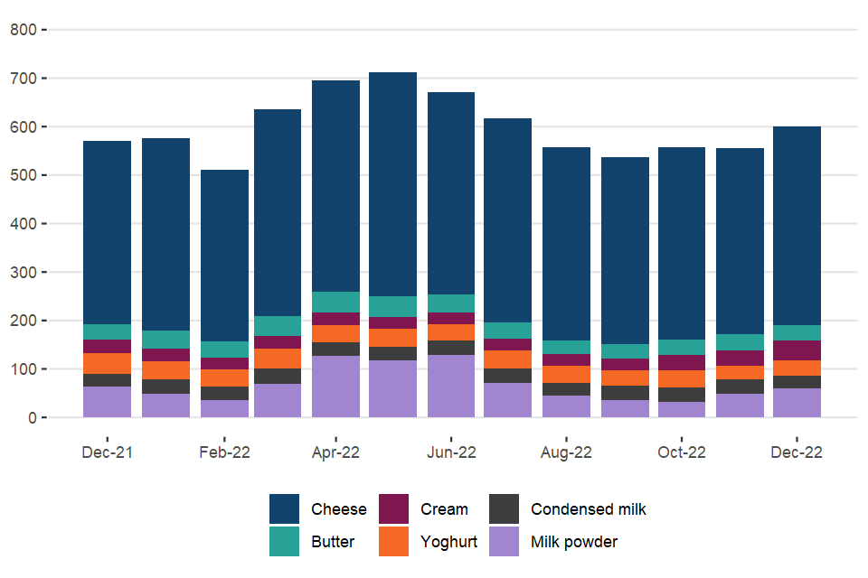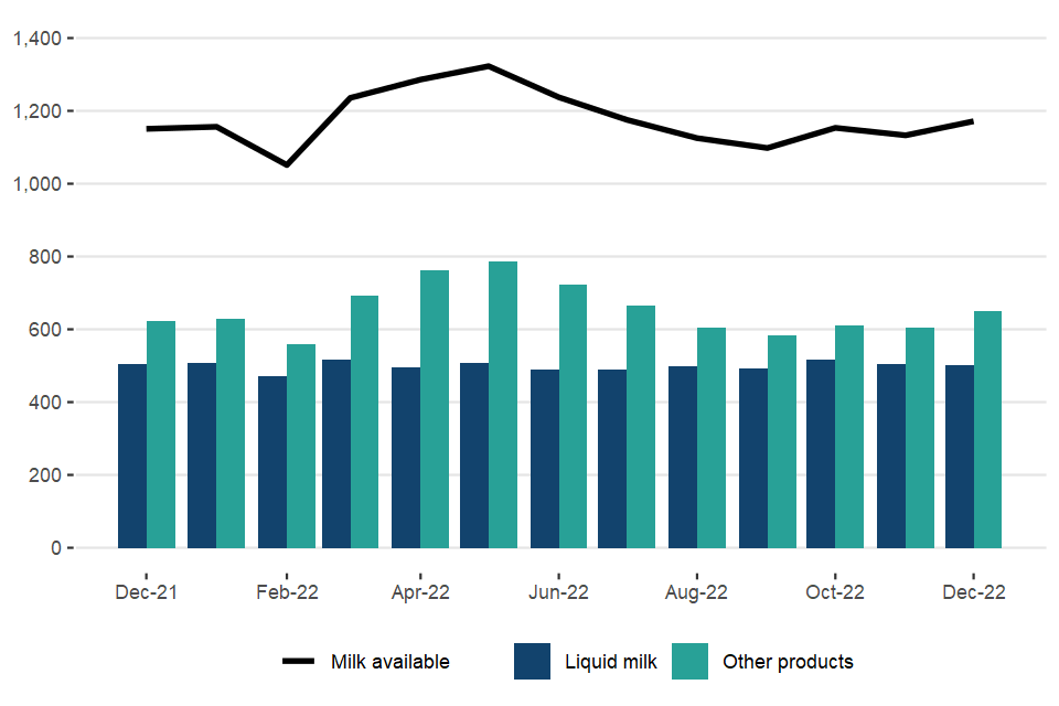 Usage of milk by dairies in the United Kingdom statistics: December 2022 (published 03 February 2023)