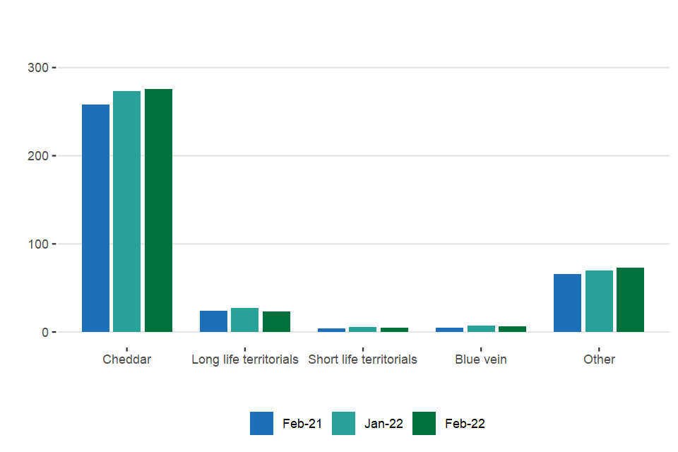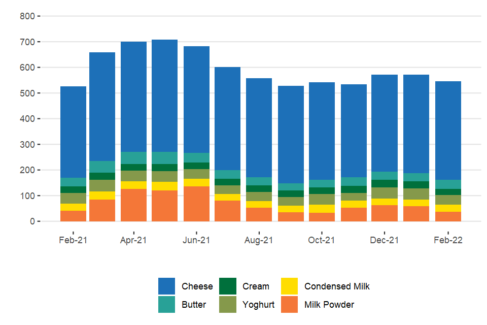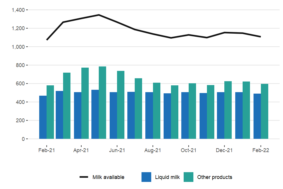 Usage of milk by dairies in the United Kingdom statistics: February 2022 (published 31 March 2022)