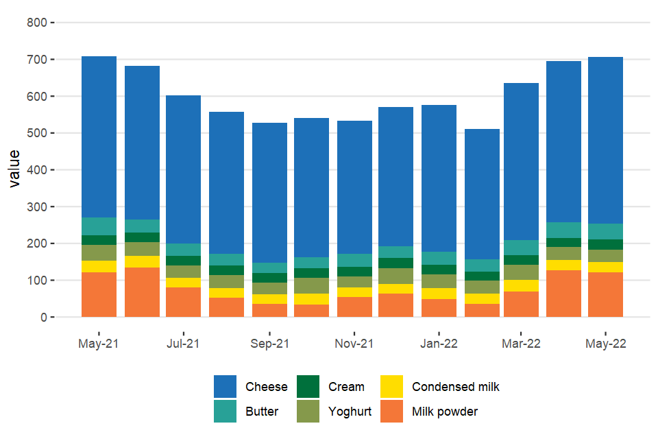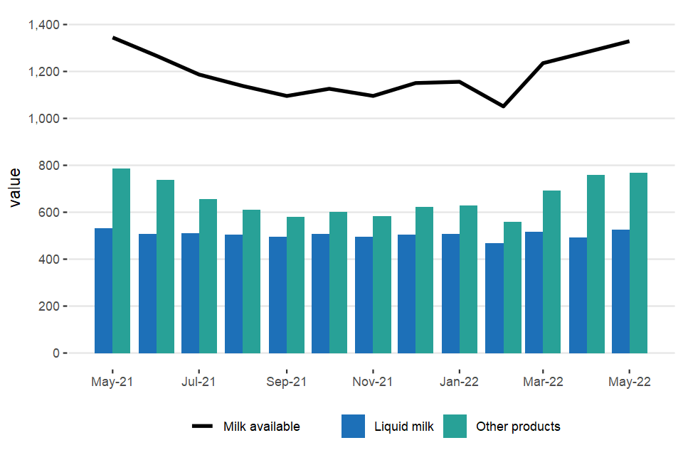 Usage of milk by dairies in the United Kingdom statistics: May 2022 (published 30 June 2022)