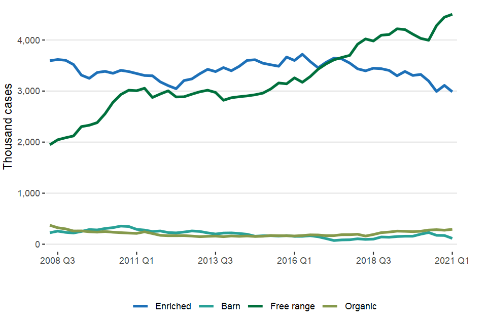 This quarterly release will be next updated at 09:30 on 28th October 2021. Full time series are available for download at: https://www.gov.uk/government/statistics/egg-statistics.