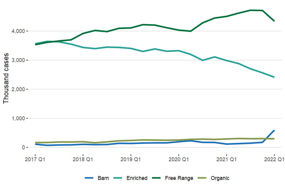 This quarterly release will be next updated at 09:30 on 28th July 2022. Full time series are available for download at: https://www.gov.uk/government/statistics/egg-statistics.