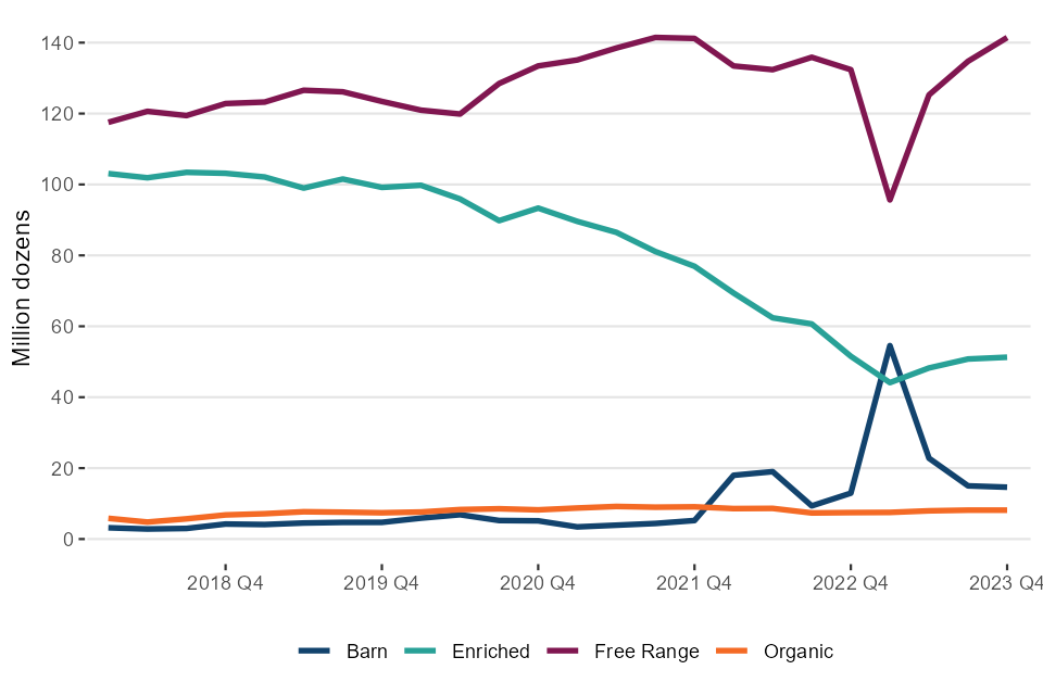 This quarterly release will be next updated at 09:30 on 25th April 2024. Full time series are available for download at: https://www.gov.uk/government/statistics/egg-statistics.