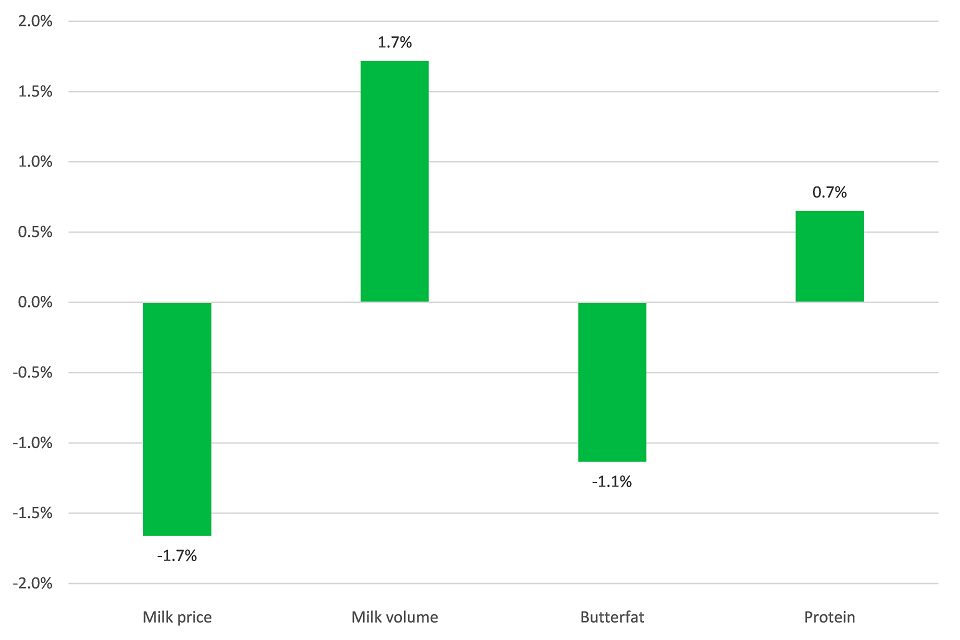 January volumes increased to 1,255 million litres, a rise of 1.3% on the previous month. Milk volumes are up 1.7% on January 2018. (Figure 1.4).
