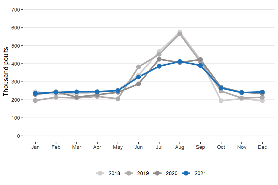Full UK and England/Wales time series of poultry and poultry meat are all available on the gov.uk website at “Poultry and poultry meat statistics”