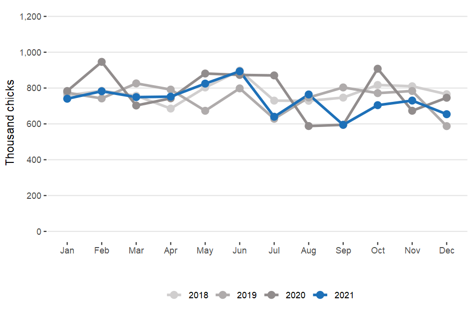 Northern Ireland slaughter data from October 2021 is estimated. Northern Ireland hatcheries data for October 2021 is estimated.