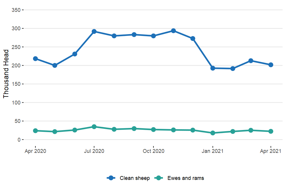 UK clean sheep slaughterings were down 8.2% on April 2020 at 859,000 head. Mutton and lamb production was 20,000 tonnes, 6.3% lower than in April 2020.