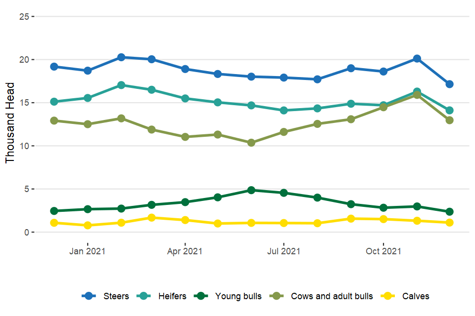 Monthly UK statistics on cattle, sheep and pig slaughter and meat production– December 2021 (published 13 January 2022)