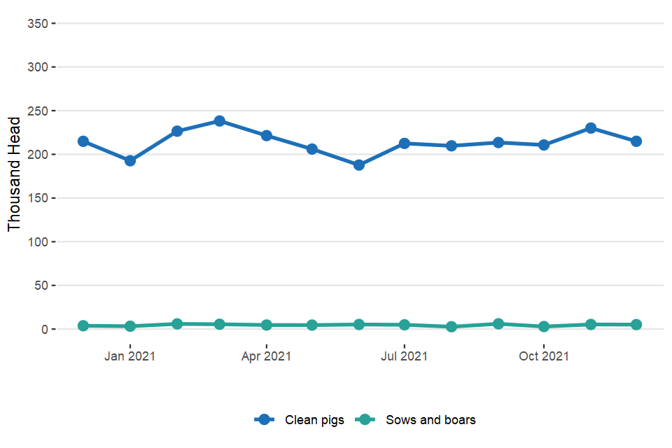 UK clean pig slaughterings were unchanged from December 2020 at 952,000 head. Pigmeat production was 90,000 tonnes, 3.9% higher than in December 2020.