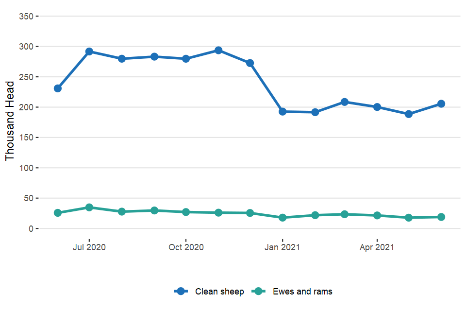 UK clean sheep slaughterings were down 11% on June 2020 at 881,000 head. Mutton and lamb production was 20,000 tonnes, 12% lower than in June 2020.