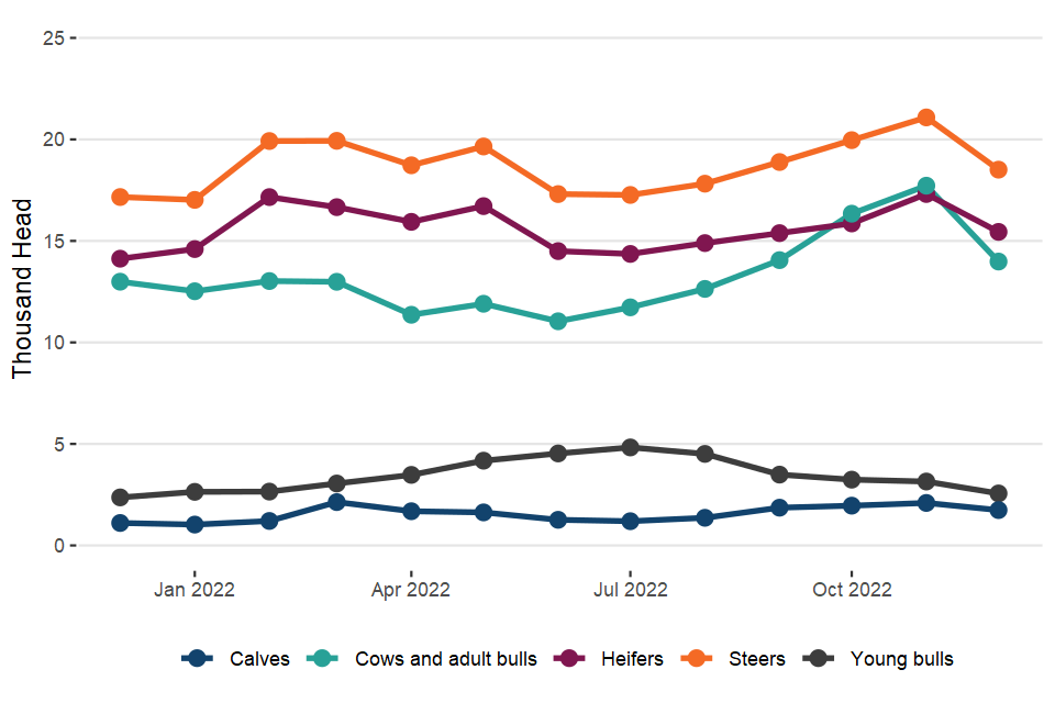 Monthly UK statistics on cattle, sheep and pig slaughter and meat production– December 2022 (published 12 January 2023)