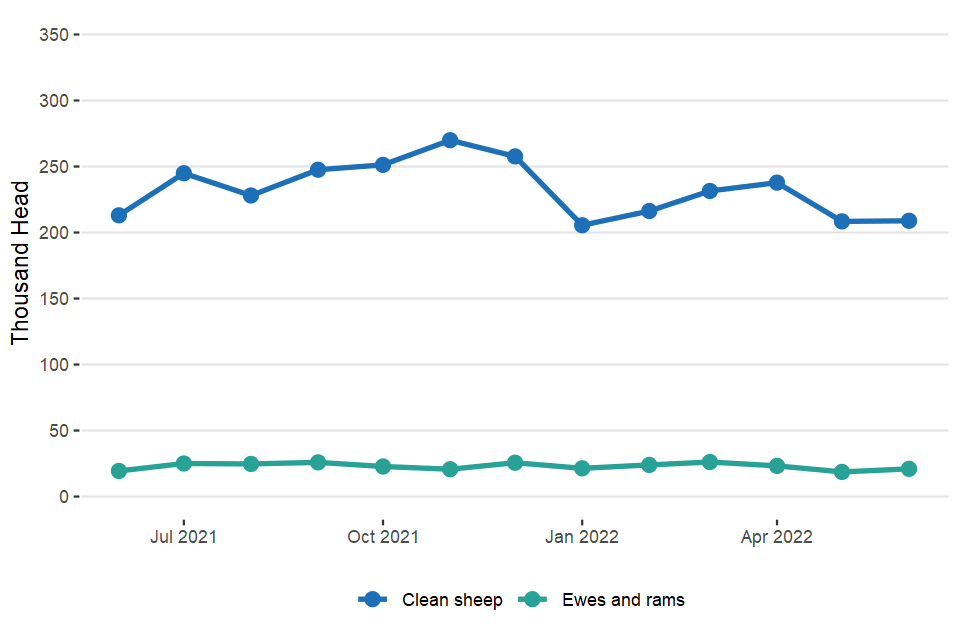 UK clean sheep slaughterings were down 2.0% on June 2021 at 895,000 head. Mutton and lamb production was 20,000 tonnes, 0.8% lower than in June 2021.