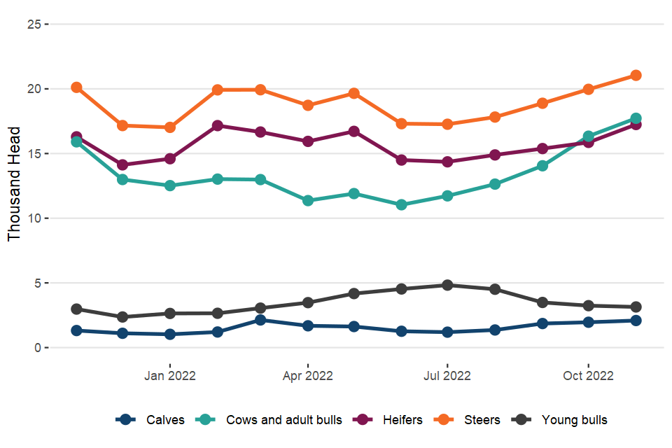 Monthly UK statistics on cattle, sheep and pig slaughter and meat production– November 2022 (published 22 December 2022)