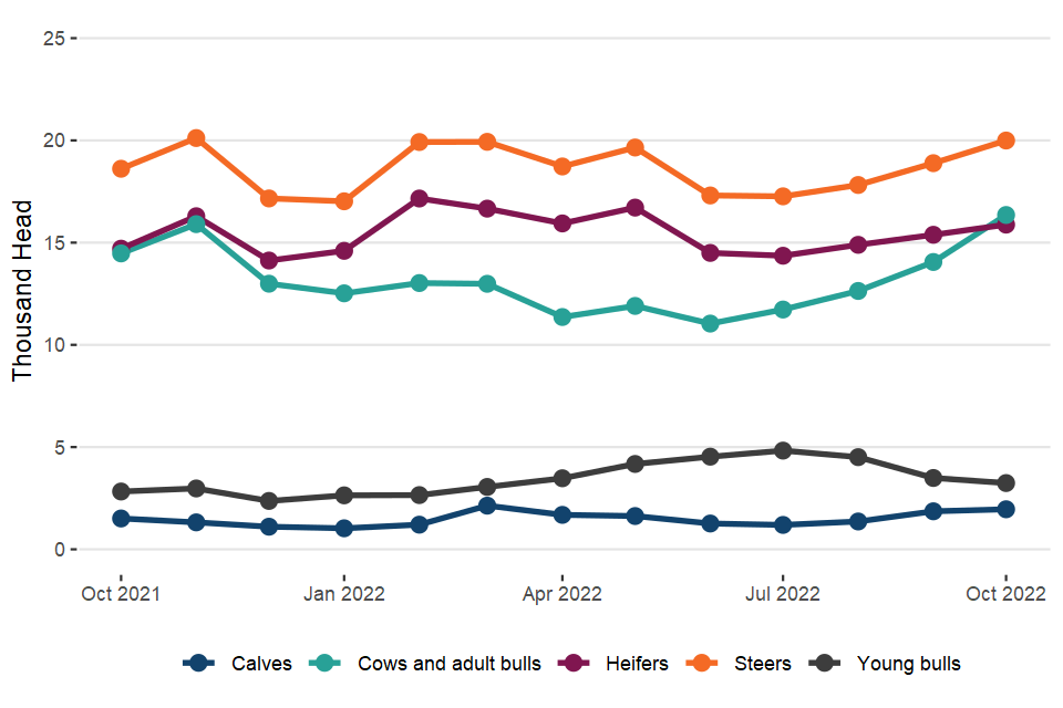 Monthly UK statistics on cattle, sheep and pig slaughter and meat production– October 2022 (published 10 November 2022)