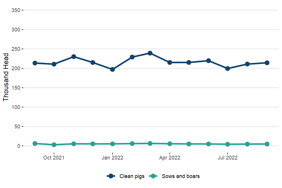 UK clean pig slaughterings were up 0.3% on September 2021 at 918,000 head. Pigmeat production was 84,000 tonnes, 0.4% lower than in September 2021.