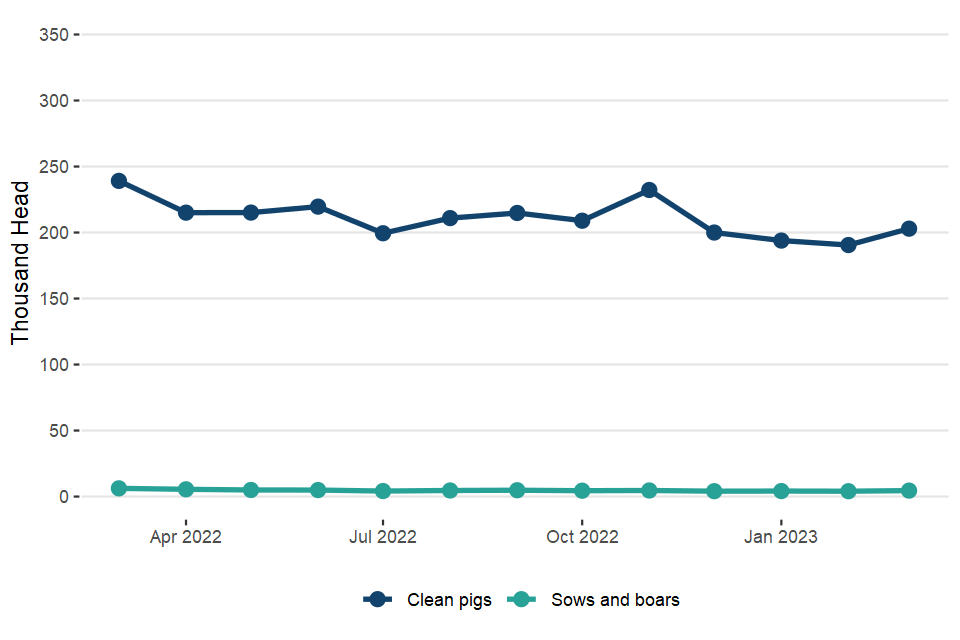 UK clean pig slaughterings were down 15% on March 2022 at 899,000 head. Pigmeat production was 83,000 tonnes, 18% lower than in March 2022.
