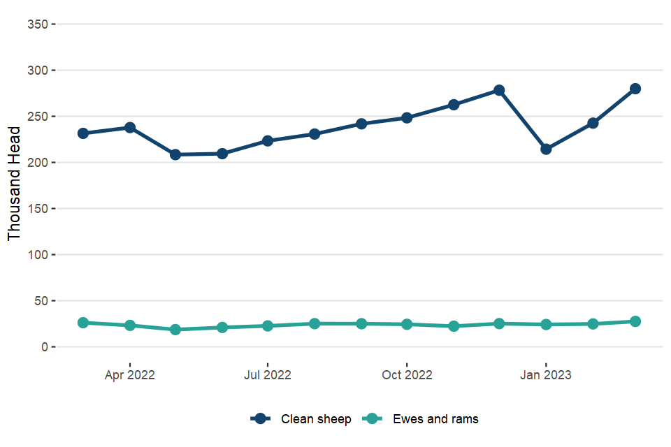 UK clean sheep slaughterings were up 21% on March 2022 at 1240,000 head. Mutton and lamb production was 28,000 tonnes, 15% higher than in March 2022.