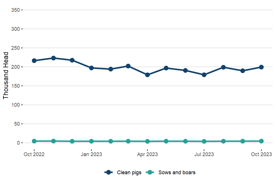 From October 2023 we have revised our pig slaughter figures between January 2021 to September 2023. The updated figures have been included in the accompanying dataset.