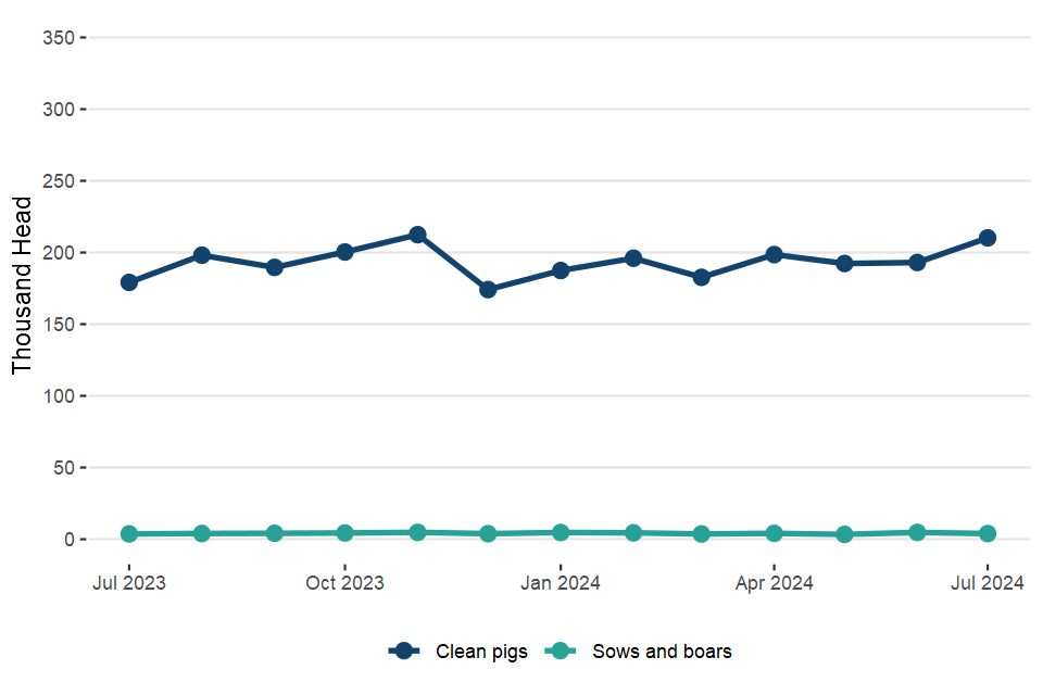 UK clean pig slaughterings were up 17% on July 2023 at 931,000 head. Pigmeat production was 86,000 tonnes, 19% higher than in July 2023.