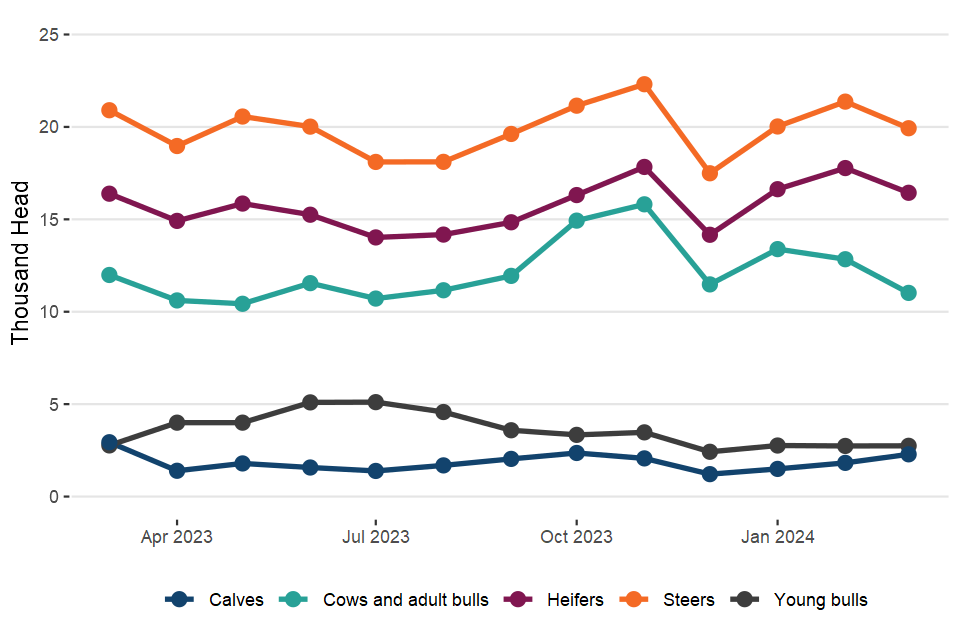 Monthly UK statistics on cattle, sheep and pig slaughter and meat production - March 2024 (published 11 April 2024)