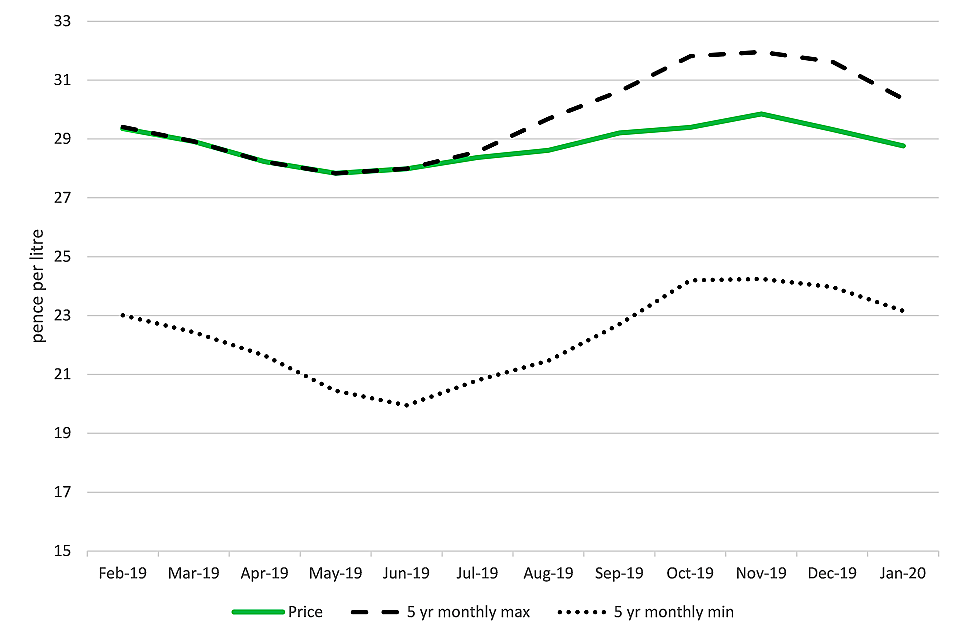 United Kingdom farm-gate milk price (pence per litre) to January 2020
