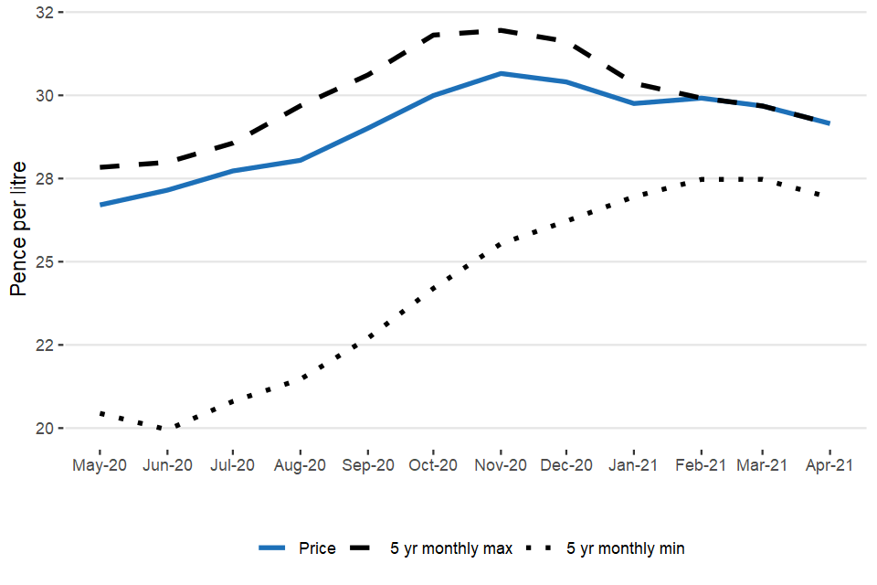 The UK average farm-gate milk price for March 2021 is 29.72 pence per litre (ppl). This represents a 0.7% (0.20 ppl) decrease on February 2021 and a 4.0% increase on the same month last year. (Figure 1.2).