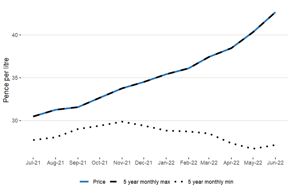 The UK average farm-gate milk price for June 2022 is 42.66 pence per litre (ppl). This represents a 5.8% (2.34 ppl) increase on May 2022 and a 42% increase on the same month last year. (Figure 1.2).