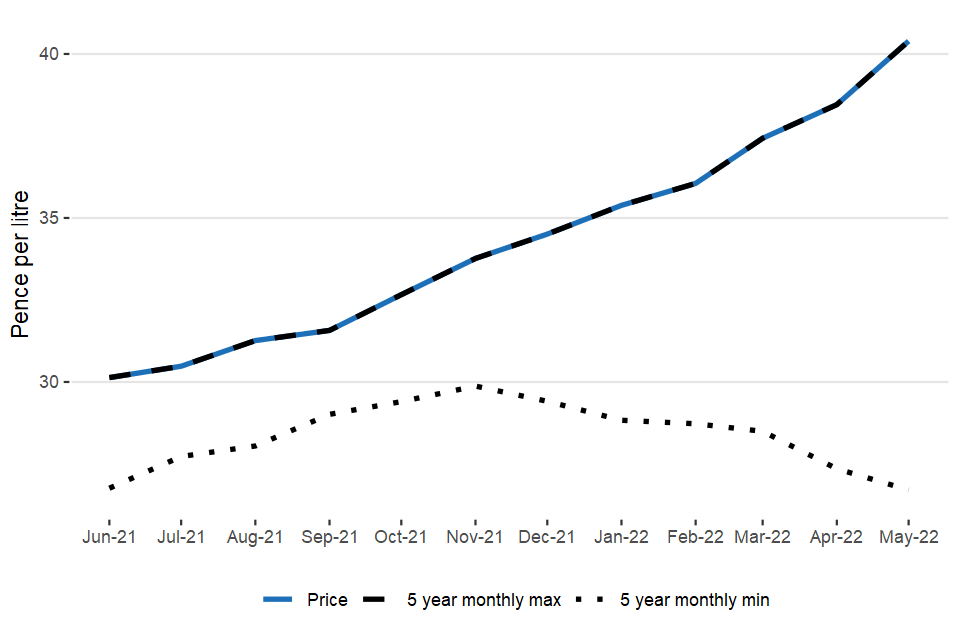 The UK average farm-gate milk price for May 2022 is 40.39 pence per litre (ppl). This represents a 5.0% (1.94 ppl) increase on April 2022 and a 34% increase on the same month last year. (Figure 1.2).
