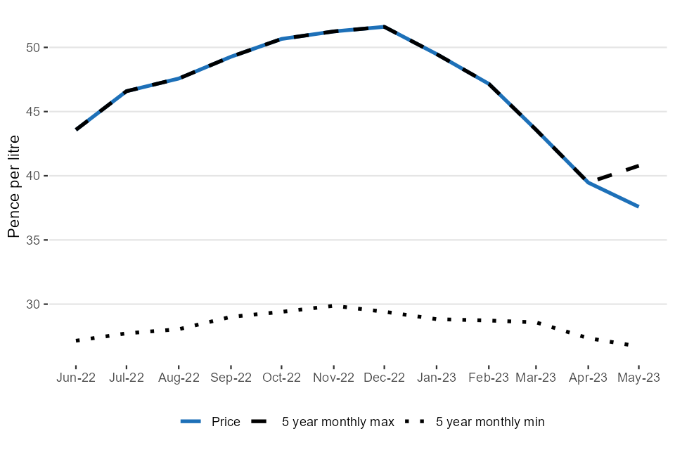 The UK average farm-gate milk price for May 2023 is 37.58 pence per litre (ppl). This represents a 4.8% (1.89 ppl) decrease on April 2023 and a 7.8% decrease on the same month last year. (Figure 1.2).