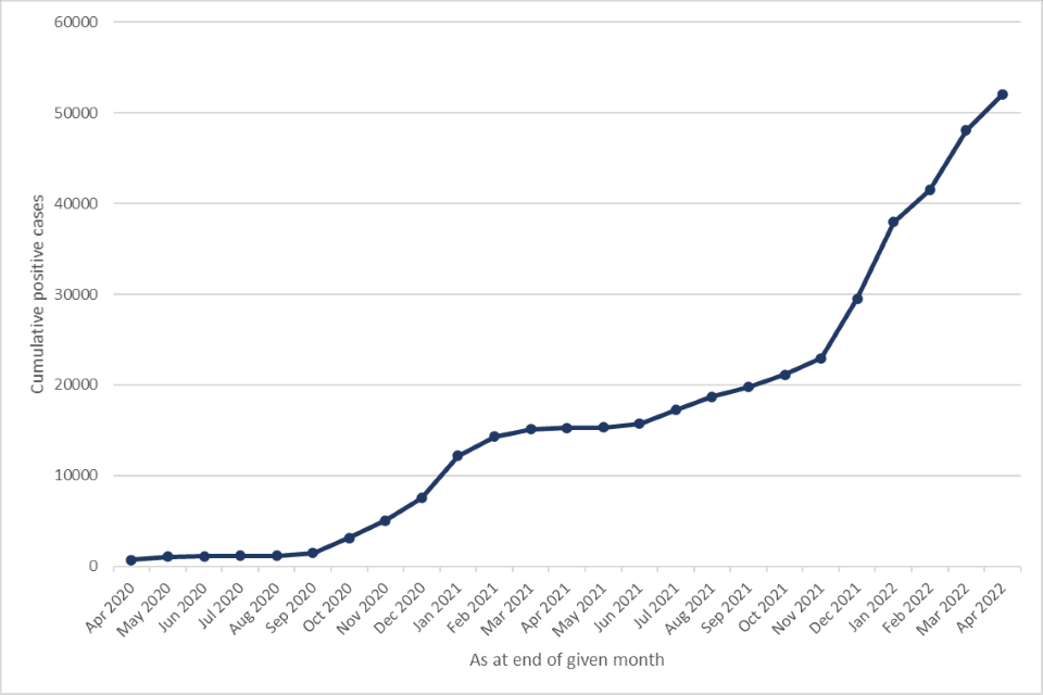 Figure 1: HMPPS staff cumulative COVID-19 positive cases, as at end of months April 2020 to April 2022