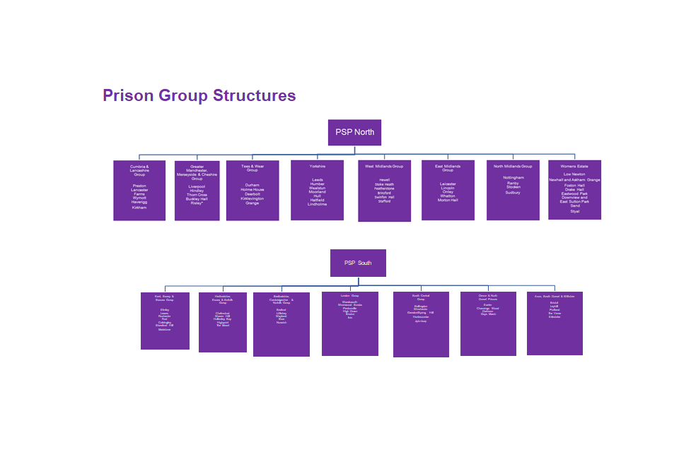 | Prison Group Directors | Senior managers responsible for the line-management of establishments organised either regionally or for Wales or for all Long Term / High Security Prisons or for the Young People’s Estate. |