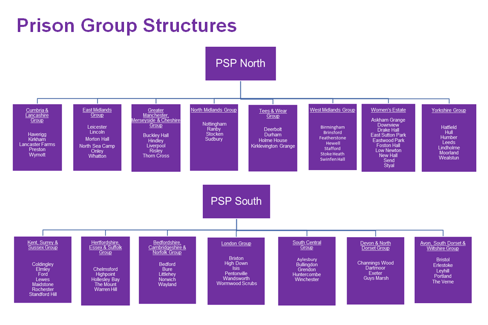 | Prison Group Directors | Senior managers responsible for the line-management of establishments organised either regionally or for Wales or for all Long Term / High Security Prisons or for the Young People’s Estate. |