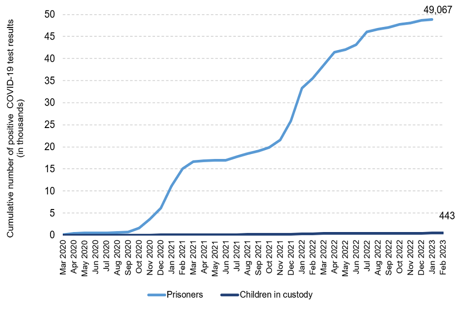 49,510 prisoners or children in custody have tested positive for COVID-19 since the start of the pandemic, across 130 establishments, almost all of whom were adults.