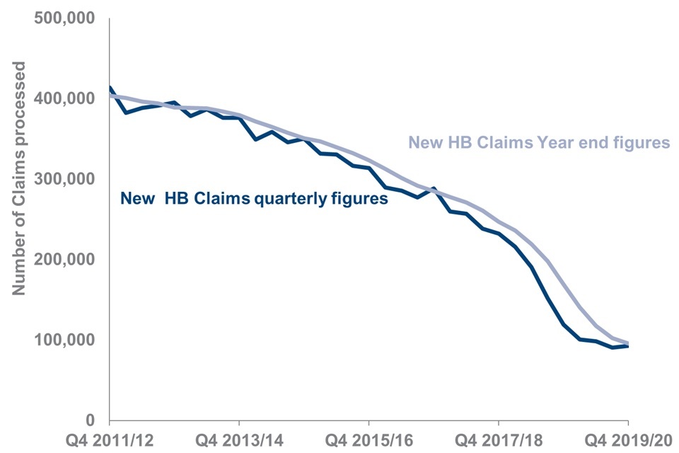 Figure 3: Number of New HB Claims processed in Great Britain up to Q4 2019 to 2020