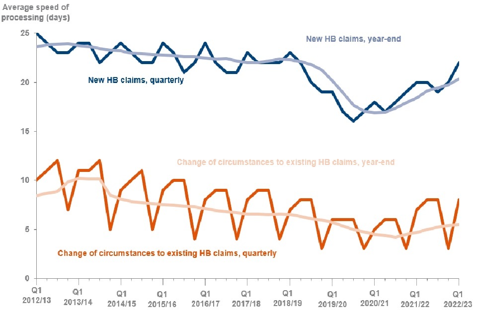 the average speed of processing for change of circumstances to an existing HB claim is 8 calendar days in the latest quarter, which is five days higher than last quarter and one day higher than quarter 1 2021 to 2022. This increase in the latest quarter is somewhat of a seasonal trend and rolling average year-end figures show only a slight increasing trend over the last 18 months
